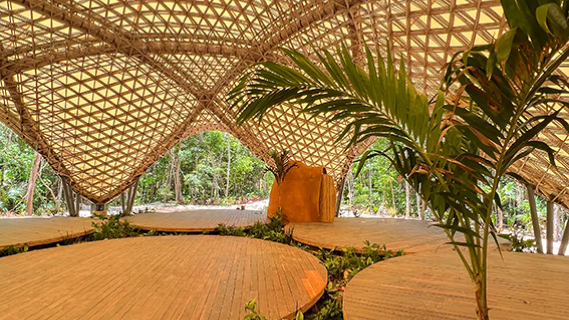 Kaybé es un proyecto inspirado en la morfología de las chozas mayas. La apuesta fue celebrar la naturaleza exterior, escondiendo la arquitectura entre la selva, dejando expuesta al interior su forma y su sistema constructivo.