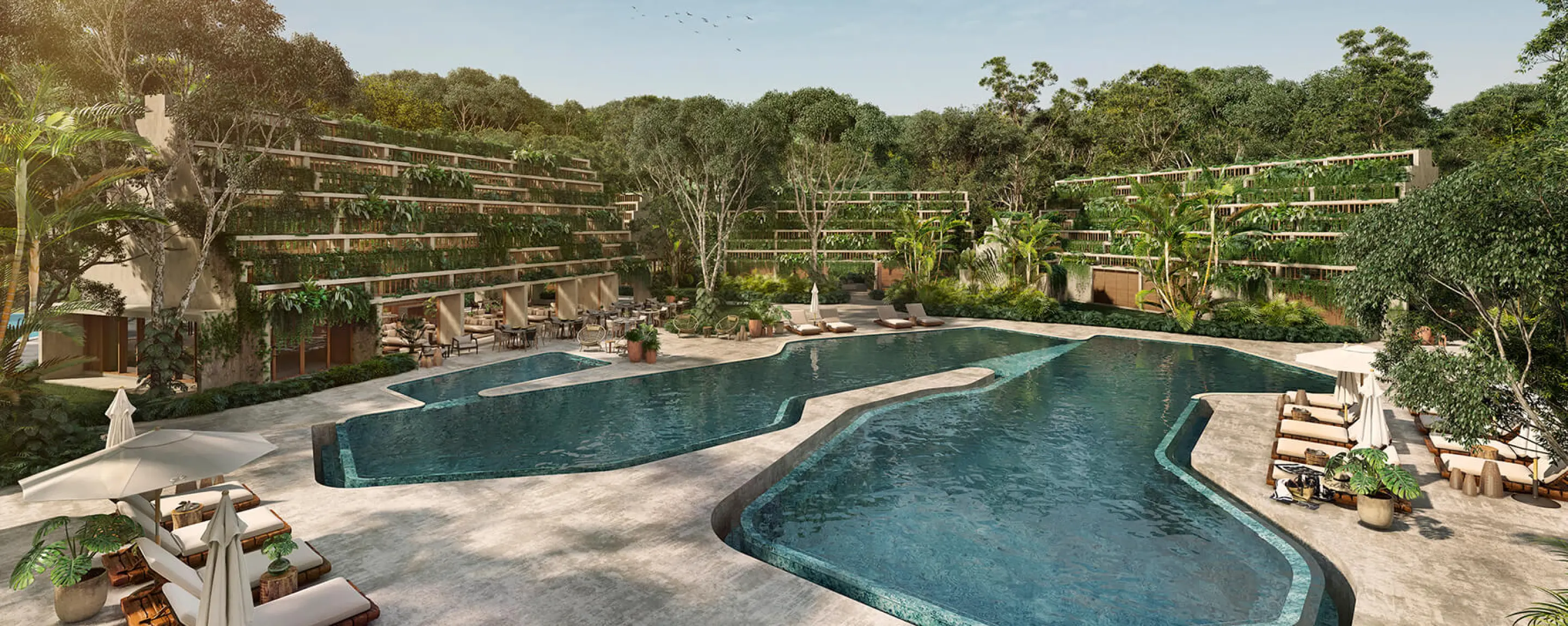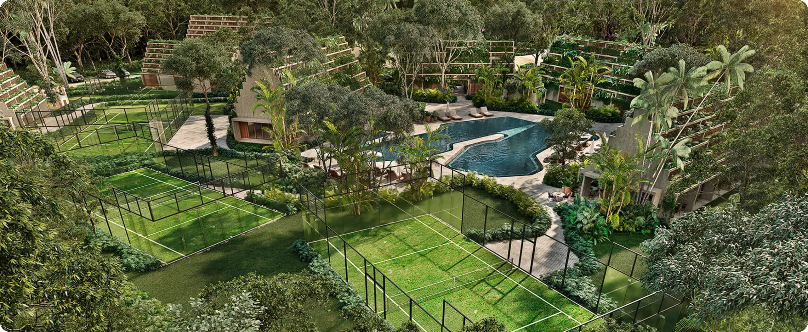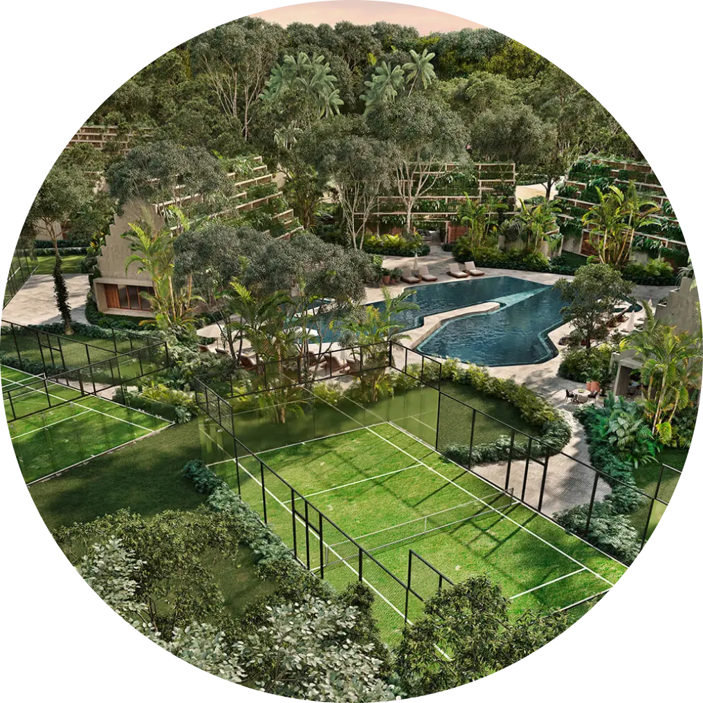 Junglar Tulum está conformado por 8 town homes con amplios espacios en donde podrás disfrutar en familia la comodidad y privacidad que ofrece su ubicación dentro de Kaybé, ya que se encuentra a tan sólo unos pasos de su íncreible casa club.